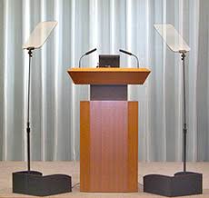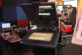 A teleprompter, or autocue, is a display device that prompts the person speaking with an electronic visual text of a speech or script. Using a teleprompter is similar to using cue cards.